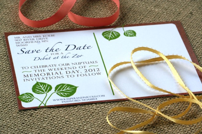 Congratulations to Kasper and Nicole Kolbe who recently got married in Florida! I designed their beautiful postcard save the date card to announce their upcoming parties in the summer celebrating their marriage. This modern design features a rustic tree and beautiful birds flying above. Check it out. See similar designs in the Sofia Invitations Etsy Shop.