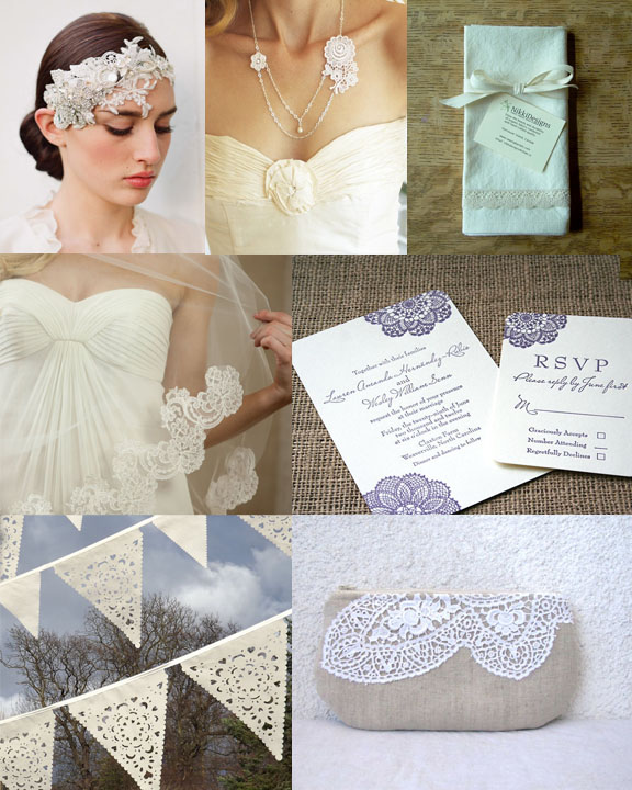 Lace is so lovely, and can be such a pretty addition to your wedding theme. Check you these products from Etsy shop owners featuring lace: