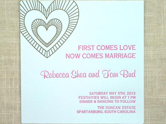 Pink and orange palm tree wedding invitation: Sofia Invitations and Prints