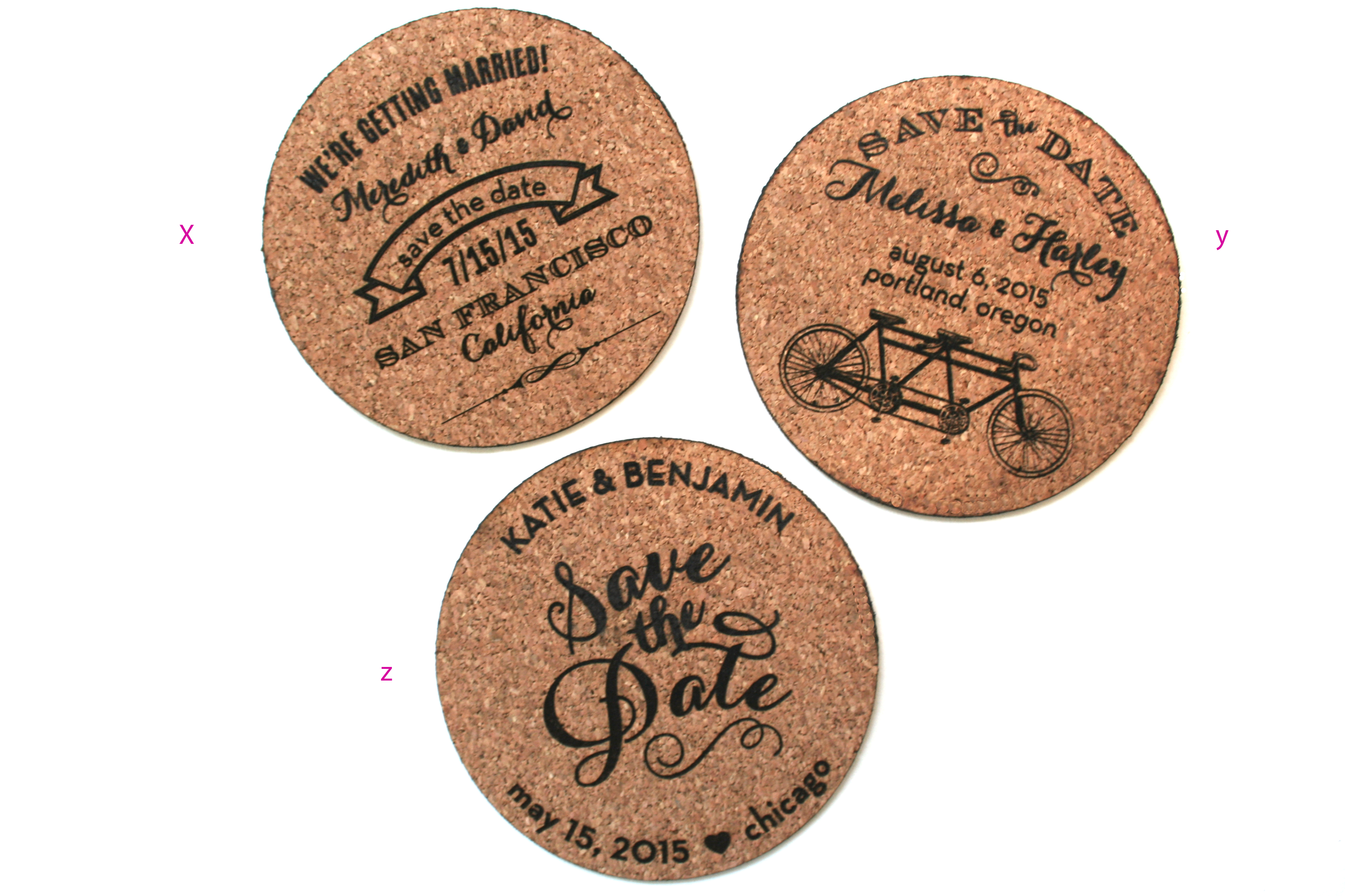 These cork coasters are super special…….they are also magnets! Perfect to announce your vineyard or rustic wedding. Order them today in the Sofia Invitations Etsy Shop here.